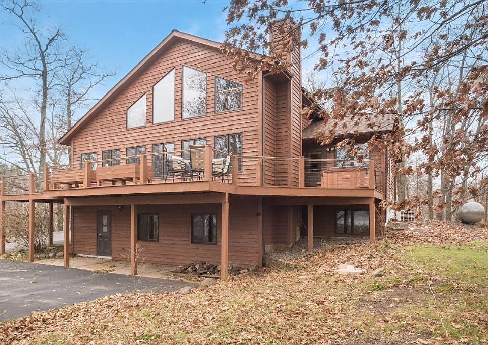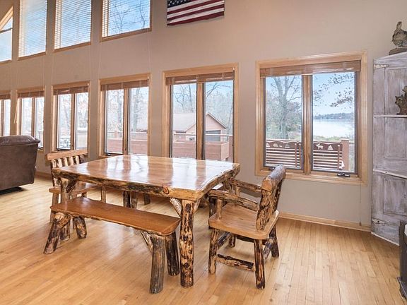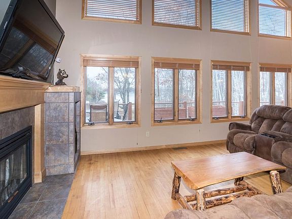 If you like sunsets, this lake home is for you. This place screams Minnesota! From the shoreline fire pit, to the hot tub and wrap-around deck, to your own wetland wildlife area. With open concept living area, lofted ceiling, fireplace, and LOADS of windows, the house maximizes lake view and evening sun. Lake Access on TWO sides and both docks stay! Two oversized garages have ample room for toys. Whatever water hobbies you like, fishing, hunting, boating, swimming; this property brings it.