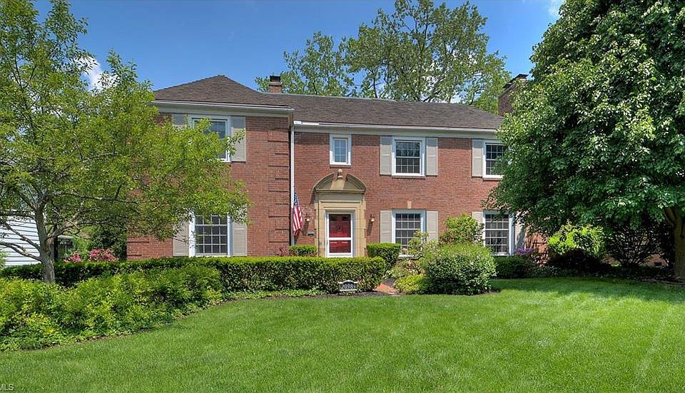 Classic gracious brick Georgian, located in a sought after area,, meticulously maintained by current owner with lovely architectural details-arched doorways, decorative crown moldings, wainscoting, 3 fireplaces, coffered ceilings, tray ceiling, ETC. Spacious living room anchored by wood burning fireplace with surround flows to a large family room, wall of built-in cabinets and slider to a secluded patio. A private paneled den wall of shelving and coffered ceiling accessed off the front entry. The elegant formal dining room has a wainscoting and a chair rail. The updated eat-in white kitchen features a center island, modern decorative backsplash, stainless appliances, rear stairs, pantry storage and a large mudroom with bench seat and more storage. A gracious staircase leads to the 2nd floor. The master bedroom suite includes a cozy fireplace with marble surround, walk-in closet and updated bathroom plus a trayceiling with rope architectural feature. Four additional bedrooms and 2 updated full bathrooms complete the 2nd floor. A recreation room with fireplace, laundry and storage are located in the lower level. Four splitter A/C units keep the home comfortable during the hot weather. Stone patio overlooks the lush rear yard. This home exudes love and pride of ownership, waiting for new memories to be made! Colby Road is very convenient ....minutes to University Circle and downtown Cleveland or seconds to Fairmount Circle and all the shops and restaurants.