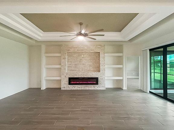 Stylishly Upgraded Summerville Model on Private Preserve Lot | Verdana Village, Estero Built in 2023, this 3+ bedroom, 3 bath Summerville model offers 2,444 sq. ft. of beautifully finished living space with thoughtful custom details throughout. The open great room features a brand-new entertainment wall with stacked stone, fireplace, and custom lighting beneath a stunning racetrack ceiling design with a 72” commercial fan. Fresh interior paint brightens the home, while all bedrooms showcase custom accent walls and model-style finishes. The kitchen stands out with a new high-end tile backsplash, center island wrapped in shiplap with custom paint, and plenty of space for gatherings. The spacious primary suite includes a tray ceiling with beams, two custom walk-in closets, and an elegant bath with dual vanities and a walk-in shower. Enjoy peaceful preserve views from the screened-in lanai and the convenience of a 3-car garage. Located in Estero’s premier Verdana Village, residents enjoy world-class amenities including a resort-style pool and spa, indoor pickleball, tennis, basketball, fitness and movement studios, Drift Restaurant & Craft Bar, racquet sports shop, dog park, playground, and a secure guard-gated entrance. West side residents also have exclusive access to a second clubhouse with lap pool, spa, sports field, pavilion, and gathering areas. Just minutes from RSW Airport, Hertz Arena, Coconut Point, Miromar Outlets, Old Corkscrew Golf Club, and Barefoot Beach, this home offers the perfect blend of modern design, privacy, and resort living.