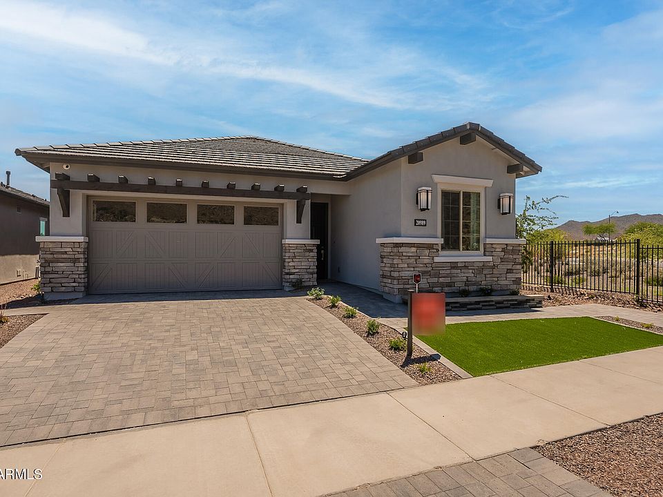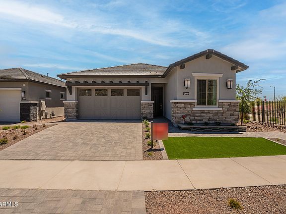 FORMER MODEL HOME -MOUNTAINSIDE LIVING AT ITS FINEST! Discover the epitome of luxury and comfort in Victory at Verrado, Buckeye's premier 55+ community.This 1,490 sq. ft. single-story gem features 2 bedrooms, 2 bathrooms, and a flex space—perfect for a dining area, home office, or reading retreat. Designed with soaring 10' ceilings and 8' doors, the home feels bright, open, and elegant. The paver driveway and walkway complement the modern architecture and elevate the curb appeal. Inside, you'll find double-stacked cabinets, quartz counters, designer lighting, and a host of high-end upgrades that define sophistication. The large lot provides extra space and privacy, This home truly blends elegance and practicality in one perfect package.