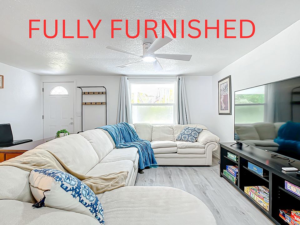 This Wonderful and recently modernized Home on a dead end street abutting a beautiful county park. Newly painted, New Kitchen Appliances, countertops and new roof. New flooring throughout. Beautiful fenced in back yard with patio and sliding glass door to family room. FULLY FURNISHED.
