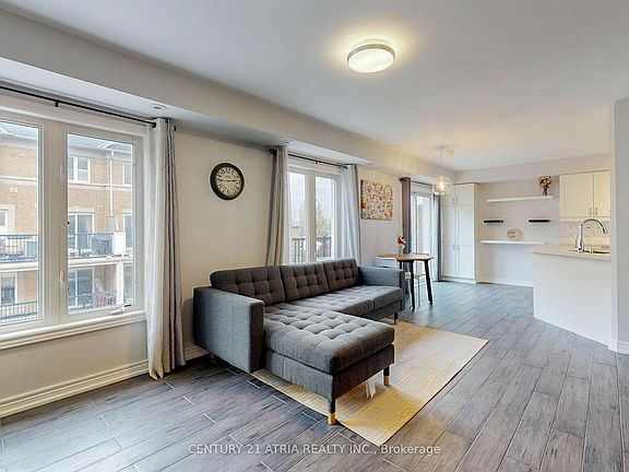 Upgraded 2 bedroom townhouse unit with 2 full bathrooms & a powder room. Better than living in a condo apartment. Updated unit features modern kitchen with quartz counters, herringbone backsplash, stainless steel appliances, easy to maintain tile flooring on main, rustic wood planked accent wall, stylish two tone wooden staircase. W-I-D-E living area features lots of windows! Enclosed private garage long enough to park big vehicles, with additional second car parking on covered driveway. Bright South facing unit with oversized open-sky balcony that lets more sun enter the unit. Imagine dining on the balcony under the stars! Right across from school & Castlemore Park. 10 minute walk to Greensborough PS, 15 mins walk to Mount Joy GO Train station & shoppes on Markham Rd. 13 mins drive to Markville Mall. Multiple community centres, libraries, indoor pools, & sporting facilities all within 15 mins drive. Visitors parking spaces available. Don't miss!