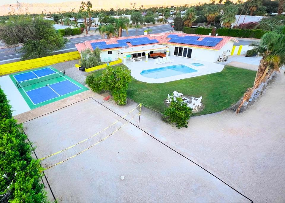 Over 1/2 an Acre Resort-style Home Meets the Investor's Dream - in Ranch Club Estates | Short-Term Rental Ready (NO WAITLIST) *PickleBall*With an established rental history of over $500,000+ in bookings in the last few years, investors can confidently realize this home's potential as an income generating property. Located on a private corner lot spanning over half an acre, this fully furnished, short-term-rental-ready home in the highly sought-after Ranch Club Estates offers the perfect blend of privacy, exclusivity, and income. With paid-off solar, $56K in future bookings, and no STR permit waitlist, this is a rare turnkey opportunity for both investors and lifestyle buyers. Solar Panels Paid Off - Enjoy savings of $800+per month (no electric bill)- Private Regulation-Size Pickleball Court - One of only a few in Palm Springs; an exclusive, resort-style amenity- Spacious 625 sq. ft. Climate-Controlled Game Room - Ideal for entertainment or guests- Easily Convertible to Four Bedrooms - Perfect for maximizing rental income- $56,000 in Future Bookings - Transferable to the new owner- Corner Lot on Over Half an Acre - Exceptional privacy, space, and curb appeal- RV Access - Ample room for parking or recreational vehicles- Potential for Casita or Second Home - Endless possibilities for added value- Sold Turnkey Furnished - Move right in or start renting immediately- No HOA and Not on Lease Land - Full land ownership with no added fees- Expansive Chef's Kitchen - Designed for entertaining and culinary enthusiasts- Expansive outdoor recreation area for guests and gatherings- Brand-New Dishwasher and Oven - Recently installed upgradesDon't miss this exceptional opportunity to own a private, resort-style Palm Springs property combining luxury, income potential, and one of the most exclusive amenities in the city -- a regulation-size pickleball court with no STR waitlist.