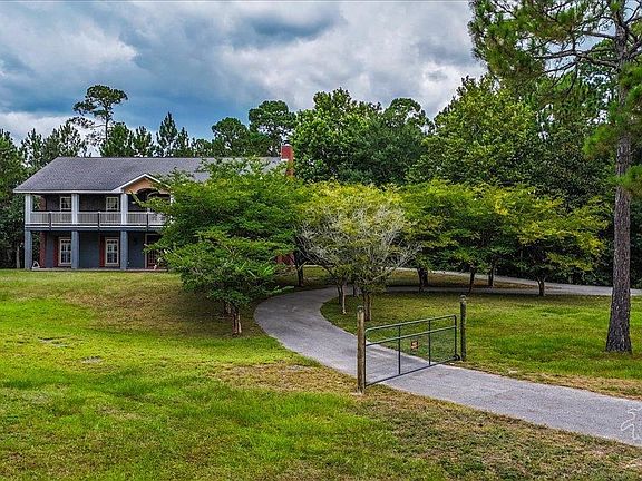 Beautiful custom two-story home on 20 private acres! Finding this level of peace and privacy so conveniently located near the beaches, I-10, Milton, Pace and Pensacola is a rare opportunity. This 4 bedroom, 2 bath home has seen recent updates, allowing you to move right in and enjoy. Designed for both comfort and entertaining, the property features multiple covered decks and patios perfect for gatherings or quiet relaxation. Enjoy fishing from the bank of a stocked pond with well, surrounded by nature and serene views. Inside, the great room offers soaring ceilings and a wood-burning fireplace, creating a warm and inviting atmosphere. The kitchen includes updated lighting, stainless steel appliances, a built-in microwave, a hop-up bar, granite countertops, and crown molding throughout the home. The upstairs primary suite is a true retreat, featuring a sitting area, office, or flex space with direct access to a covered deck or balcony, an ideal spot to unwind and take in the natural surroundings. Recent improvements include a new roof (November 2025), new upstairs A/C (2025), second A/C unit (2014), and a new water heater. A workshop with power adds additional functionality and storage. This exceptional property offers privacy, space, and move-in convenience.