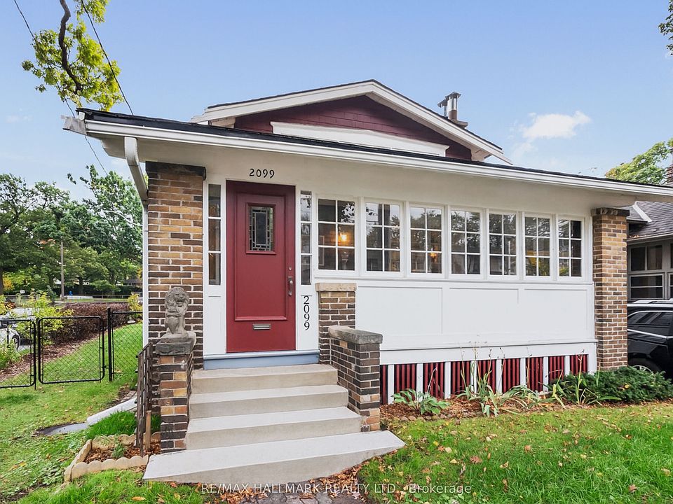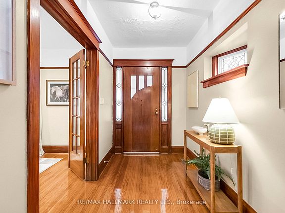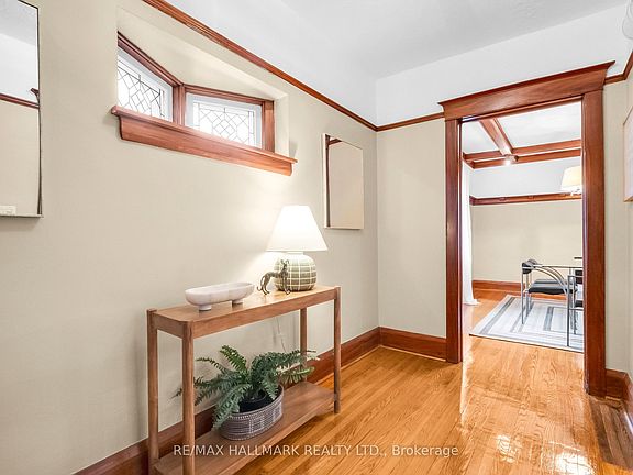 They don't make homes like this anymore. This double-brick Arts & Crafts bungalow blends timeless character with modern comfort. From the enclosed front porch to the original wood trim, beams, stained glass, leaded windows, custom built-ins, and solid wood front door, every detail has been lovingly maintained. The living room is anchored by a cozy fireplace, large formal dining room and an impeccably cared for retro kitchen. The main floor features two bedrooms with hardwood floors, while the finished loft boasts refinished original hardwood, perfect as a 3rd bedroom, home office, kids room, or even future top-up potential. Natural light fills every level, including the spacious basement with excellent ceiling height, a newly renovated second bathroom, bonus bedroom or living space, and plenty of room to expand. The south-facing backyard is private and low-maintenance with gardens, a gazebo, and BBQ area ideal for entertaining with potential for a hot tub, sauna, or cold plunge. A detached garage easily fits a car or SUV, plus lot's of space in front of the garage. Backing onto Norwood Park, it feels like an extended backyard with tennis courts, playground, dog park, wading pool, and a winter ice rink. Just steps to cafés, restaurants, and breweries on Main Street, minutes to Queen St E and the Danforth, and walking distance to Danforth GO, Main Station, and the streetcar, this transit-friendly, family-oriented neighbourhood is home to top-rated schools Kimberley Jr PS, Bowmore, and Malvern CI. Move-in ready with income potential, this Arts & Crafts bungalow is a rare find for families, downsizers, or first-time buyers.