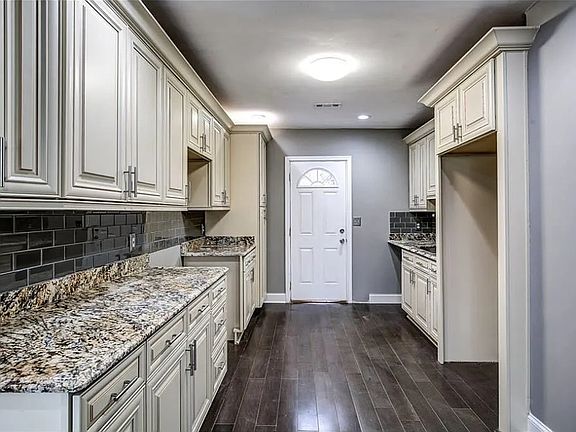 Updated kitchen with stainless steel appliances, granite countertops, and ample cabinet space