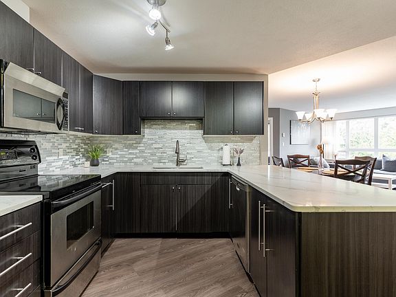 You've found it, the perfect Port Coquitlam Condo. 3 bedrooms (2 are primary suites). 2 full baths & over 1,100 sq ft of updated & renovated living space. The 3rd bdrm makes a great home office. Open concept entertaining areas. A private N.E. vantage point overlooking McMitchell Park, trees & community pool in the distance. Safe, quiet & scenic offering a Westcoast color pallette, updated laminate flooring end to end, updated appliances, backsplash, quartz countertops, washer/dryer, spacious closets & more. The cozy gas FP will heat. 2 parking (108 & 109) Large storage locker (#99). Well-equipped gym on the same floor. When you're home, you won't need a car. A perfect lifestyle location; recreation, eateries, groceries & more just steps away. O/H SAT OCT 4 (2-4 pm)