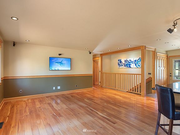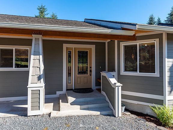 Stunning Craftsman style home on the Samish River!!This daylight basement custom rambler sits on 1.26 acres of rolling lawn, mature fir trees, w/ a garden shed & chicken coop. BEST OF ALL this home features 2 separate living areas!! Full kitchen/laundry on both levels!! Lives like a duplex. High end appliances all included. The meticulously detailed wood wrapped windows & millwork throughout along with wood floors on the main level and stairway are of impeccable quality. Spacious kitchen w/maple cabinets on both levels. View of the foothills from back deck. Newer hot tub off lower level included! Camp in your own back yard! And play in the river! Surround sound on main and lower levels. NEW 30YR ROOF INSTALLED SOON!!