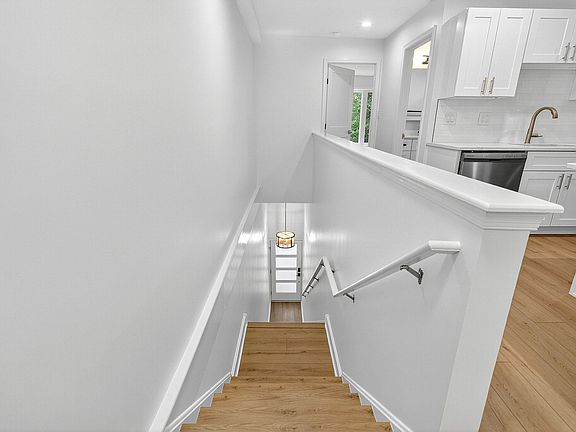 From the moment you enter through your private keyless entrance, every detail feels intentional. A wide staircase guides you up to a space that is sleek, modern, and undeniably inviting. The open floor plan is dressed in beautiful wood flooring and bathed in natural light from thoughtfully placed skylights, while the kitchen features quartz countertops, stainless steel appliances, and custom cabinetry.