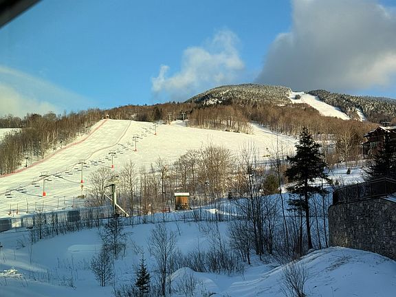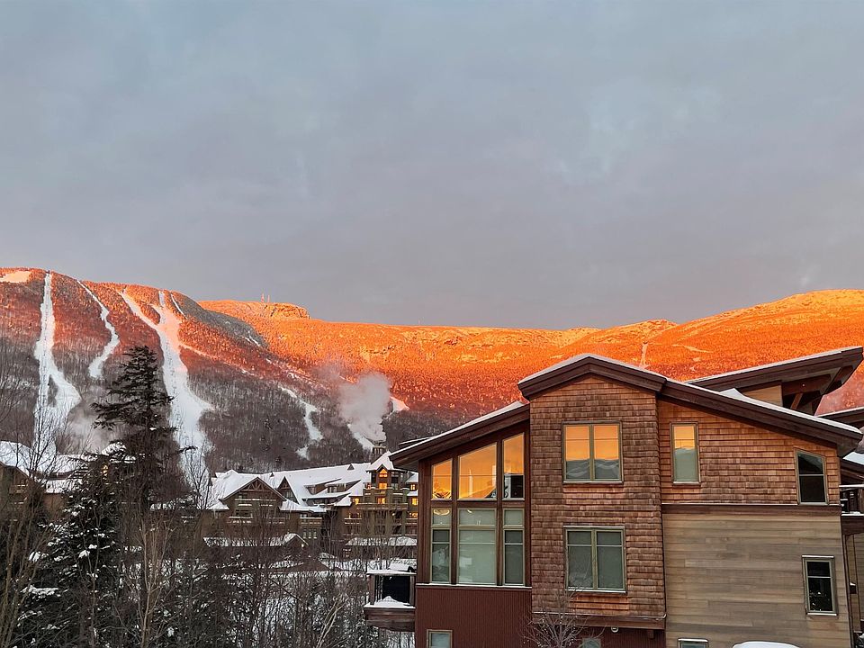 Location location location. Beautiful end unit Townhome, located steps away from the Village Center, lifts, golf course, skating rink, restaurants, and spa! Spacious, three levels of living, with floor-to-ceiling windows and fireplace overlooking amazing views of the Front Four, Mt Mansfield and Spruce Peak. Lots of glass and sunlight, with privacy created by the Enchanted Forest trail and playground below. Enjoy coffee in the morning watching the sun hit Mt Mansfield, and in the evening watching the sun set over the ridge, as you enjoy a beverage and grilling dinner on the private deck. Beautifully furnished, larger floorplan unit, with professional interior design crafted by Elements of Style/ Erin Gates (Boston). Subzero/Wolf appliances, including Subzero wine cooler and bar area. Large Samsung flatscreen TVs throughout, with in-wall speakers in each room with Sonos/Airplay audio system throughout. Heated mudroom floor with handcrafted custom cabinetry. Park in your own garage and walk right to the village and slopes. This is a premium unit, ready to move in.