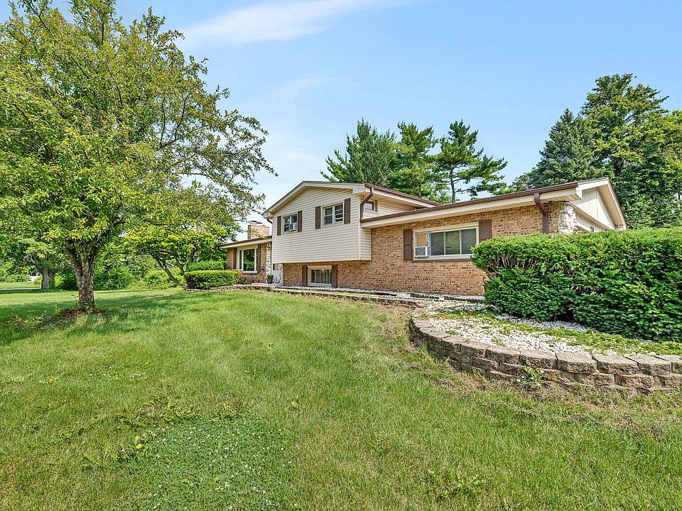 Spacious four-bedroom, two-bath split-level home sits on just over half an acre and offers the perfect blend of comfort and functionality. Enjoy peace of mind with a brand-new furnace and water softener, both installed in 2024. The home features a vaulted ceiling in the living room, creating an open and airy feel, and a eat-in kitchen with stainless steel appliances and a peninsula-perfect for entertaining. All appliances stay. A finished lower level plus a partially finished sub-basement provides ample living space and storage options. Outside, the fully fenced-in yard offers privacy and plenty of room to enjoy, complete with a back patio and two large sheds for extra storage. WIFI cameras stay as well
