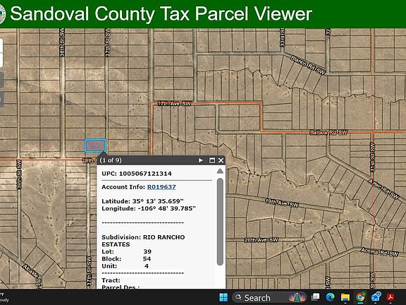 Package of 2 lots in Rio Rancho. One half acre lot on 20th St and an acre lot on 37th St SW.