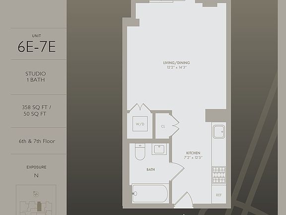 Within Residence 7E, a bright open-concept living and dining area is framed by oversized double-pane windows and wide-plank flooring. Each home features a full suite of stainless steel appliances, in-unit washer/dryer, and central heating and cooling for year-round comfort. Keyless entry adds ease and security, while abundant built-out closets create ample storage. Throughout the kitchen and baths, custom matte black hardware adds a tailored edge to clean, contemporary finishes.