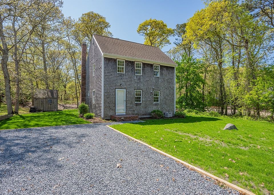 Welcome to 21 Second Street West, where Cape Cod living begins right at your doorstep. Just a few houses from Long Pond and moments from the bike trail, this idyllic location offers the best of outdoor recreation without ever needing to get in the car. This charming saltbox-style home with deeded pond rights features an open-concept first floor with soaring cathedral ceilings, a cottage-style kitchen, dining area, half bath (with potential for expansion), and a bright, inviting living room. Upstairs you'll find two bedrooms—one with picturesque views of the pond—a full bath, and a versatile sitting room perfect for a home office or guest space. Beautiful wide pine floors flow throughout the home, adding warmth and character. Exceptionally well-maintained, the property includes updated windows (approx. 10 years old), a newer boiler (7-8 years), newer water heater (2-3 years) and full basement. Step outside to enjoy pond views, new deck, freshly seeded yard, outdoor shower and shed.