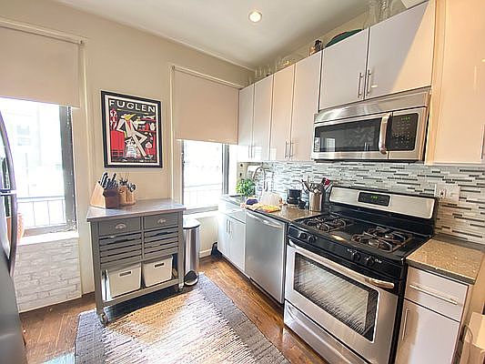 AVAILABLE FOR OCTOBER 1st SHOWN BY APPOINTMENT ONLY GORGEOUS SUN DRENCHED Top Floor LIC One Bedroom on Doctor's Row. This renovated space has a large open plan living room and kitchen featuring all new appliances and Quartz countertops. The bedroom faces North and is separated by a bank of french pocket doors flanked by large closets on either side. A brick faux-fireplace adds ambiance and charm. This is a 3rd floor walk-up apartment. There is a full bathroom with tub. Laundry in building is coin-operated and shard by three rental units. This is a one of a kind apartment near the #7 train at Court Square for easy commuting. A well-appointment space such as this in Prime LIC is hard to find. Enjoy all that Queens West has to offer such as the cafes and restaurants on Vernon Blvd and the Gantry State Park. Easy transportation by ferry or subway. No smoking - CATS will be considered on a case by case basis.