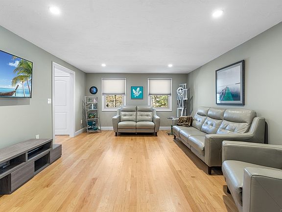 Experience modern living in this beautifully renovated home in Sharon, MA! A stunning 45' x 8' farmer’s porch (freshly painted in 2024), welcomes you into this meticulously updated property. The 2017 complete interior renovation includes custom Decora cherry cabinets with soft-close doors, granite countertops, and stainless steel appliances. The open floor plan seamlessly connects the kitchen, dining, and family room, where a double-sided gas fireplace with a custom mantel adds warmth and charm. Enjoy a primary suite with a marble-tiled shower, plus three additional spacious bedrooms. The finished basement offers versatile space and ample storage. Additional highlights include all-new prime replacement windows, a new Anderson patio slider, multi-zoned gas furnaces and AC units, a 200-amp electrical panel, new driveway(2021), and whole-house generator readiness. Step outside to a private deck—perfect for relaxing or entertaining. Don't miss this move-in-ready gem!