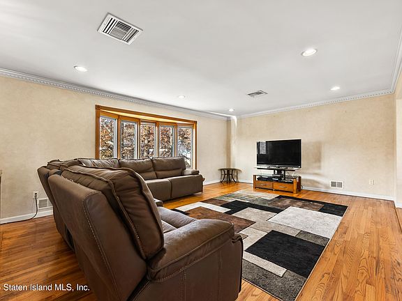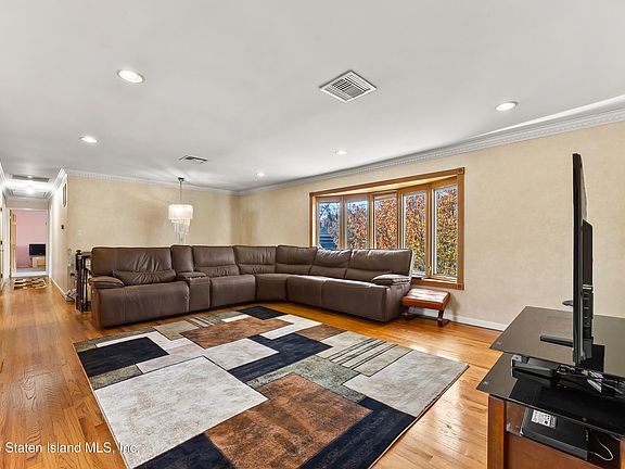 Just one block above Hylan Boulevard in prestigious Southeast Annandale, this rare legal two-family detached residence stands as a true Staten Island gem. Custom-built in 1970 on an expansive 8,000-square-foot lot, the home offers an impressive 3,080 square feet of living space, thoughtfully designed for comfort, privacy, and modern living. Inside, the main home opens with an inviting entry foyer that leads to an extra-large family room—an ideal gathering space with direct access to a resort-style backyard. This level also includes a convenient 3/4 bath along with laundry and utility rooms, all supported by a comprehensive home security system for peace of mind.