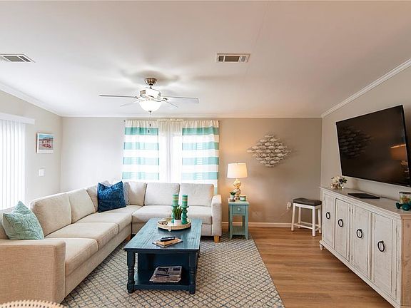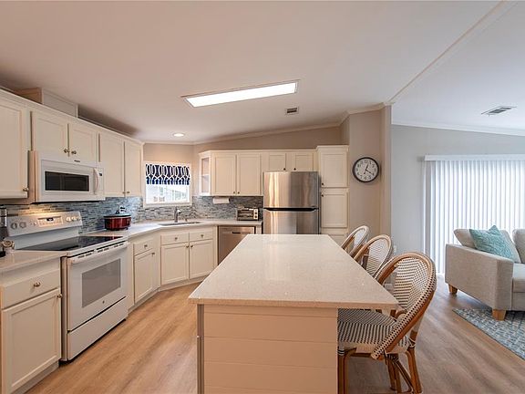 Welcome to Windmill Village, a premier 55+ resident-owned, gated community in Punta Gorda, voted “#1 Best Small Place to Live” by Money Magazine and Forbes. This meticulously maintained 2005 Fleetwood home offers 1,080 square feet of unfurnished sophisticated living with 2 bedrooms and 2 bathrooms. Step inside to an open floor plan featuring luxury vinyl plank flooring, elegant crown molding, and a chef’s dream kitchen with wood cabinets, stainless steel appliances, a wine fridge, and a stunning quartz center island. Recent upgrades include a new roof (12/2017), A/C (8/2020), carport (1/2023), stove (2018), dishwasher (3/2023), countertops, sink, and faucet (1/2023), plus updated vanities in both bathrooms and no popcorn ceilings. Relax on the spacious front porch or enjoy the charm of a paver-lined driveway enhancing the home’s curb appeal. The $256 monthly HOA fee covers water, sewer, trash, lawn care, and common area maintenance, ensuring carefree living. Windmill Village offers an active lifestyle with two private marinas, a boat ramp, trailer storage, horseshoe pits, shuffleboard, bocce ball, billiards, indoor pickleball, a large community center, and clubs for every hobby. Gather with friends at the pavilion by the heated pool. The purchase price excludes an $18,285 Buy-In Share and Bond, refunded upon sale. Don’t miss your chance to own this beautifully upgraded home in paradise—schedule your showing today!