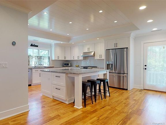 Enjoy all Darien has to offer at 21 Anthony Lane. This home is located on a private road close to town, shops and beaches. The chef's kitchen is fully equipped with high end appliances and a gorgeous large island, perfect for entertaining. A large family room with vaulted ceilings has slider access to the backyard of this well-maintained property. Relax in the generous master suite. Two additional bedrooms and full bath complete the main living level. Plenty of storage space in the unfinished basement.