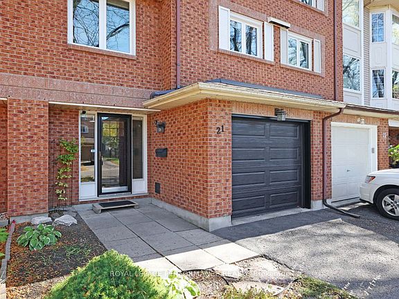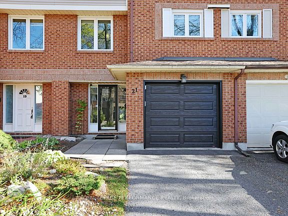 Nestled on a quiet, tree-lined street in the desirable Centrepointe neighbourhood, this extensively renovated freehold townhome (no condo fees) is a true gem. Step inside the spacious tile foyer on the main level, featuring new closet doors, a freshly updated powder room (2023) and a bright family room or office space with direct access to the private backyard patio. The second floor impresses with an elegant living and dining area showcasing gleaming hardwood floors, crown moulding, and a cozy gas fireplace adorned with cultured stone surround.The large, bright eat-in kitchen boasts updated appliances, a stylish subway tile backsplash, and a generous pantry perfect for culinary enthusiasts. Upstairs, the carpet-free third level offers three spacious bedrooms, including a primary suite with a walk-in closet and a beautifully renovated 3-piece ensuite (2023), alongside a full family bathroom (2023).Enjoy your private, fenced backyard retreat featuring mature trees, lush gardens, and a handy storage shed. Conveniently located within walking distance to Centrepointe Park, Centrepointe Theatre, Algonquin College, College Square Shopping Centre, and excellent transit options.This stunning home perfectly combines modern updates with a sought-after location ideal for families and professionals alike.