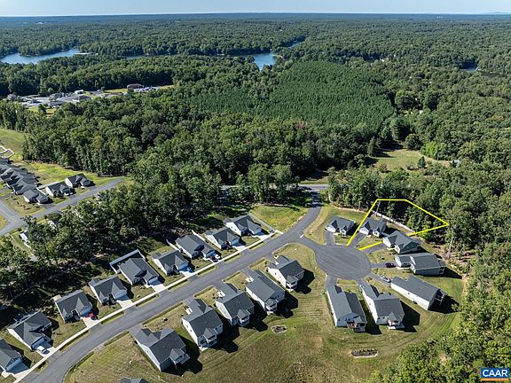 Escape the ordinary! This stylish, model-like home offers the privacy and easy-maintenance lifestyle you've been searching for. This home sits one of the most private lots with a covered deck, fenced-in yard and fire pit in the woods—your personal oasis. Enjoy true one-level living with LVP floors throughout the main areas. The gourmet kitchen is a chef's dream, featuring white cabinetry, a large island, quartz counters, tile backsplash, and stainless steel appliances with gas cooking, all open to the family and dining areas for effortless entertaining. Unwind in the spacious owner's suite with dual vanities and a huge walk-in closet. Relax or entertain on the covered Trex deck overlooking the wooded views. Plus, the expansive, unfinished walkout basement with rough-in plumbing provides massive storage or a blank canvas for future finished space. With a 2-car garage and one of the 3 bedrooms set up as an office, this home is move-in ready for first-time buyers or those looking to downsize. Village Oaks is located across from Lake Monticello's main gate, minutes from shopping, and features a community pool, clubhouse, walking trails, park, and NO YARD WORK! Less than 30 minutes to Charlottesville is your stylish, private sanctuary.