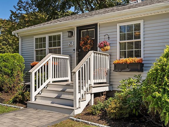 Charming 2-bedroom ranch tucked on a quiet, conveniently located side street! Curb appeal shines with beautiful landscaping, window boxes, a paver walkway, and updated front steps. Inside, enjoy a bright and open layout featuring a pretty kitchen with stainless steel appliances, gas cooking, and easy flow into the living and dining areas. The primary bedroom boasts vaulted ceilings and abundant natural light. A cozy mudroom opens to a covered porch overlooking the paver patio — perfect for relaxing or entertaining. The lower level offers a spacious finished family room with recessed lighting and a double closet, plus a clean, unfinished area for excellent storage. Ideally located just minutes to Route 3, top South Shore shopping, and dining. Enjoy the ease of one-level living — the perfect home for first-time buyers or those looking to downsize. Stylish updates and modern touches throughout make this home truly move-in ready!