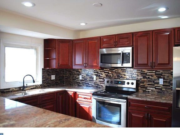 Beautiful Top Down Renovation, starting with a New Dimensional Shake Roof, All Maintenance free Vinyl Siding, New Gutters and Down Spouts, Driveway and Garage door. The Gleaming Hardwood floors throughout the Home lead you into a Bright and spacious Home with light coming in from all directions. This lower level features an In-Law, Guest Suite or possibly a private study, this flexible space has a Private access to a Brand new Full Tile Bath. There is also a Family room with Recessed lights and OSE Service door to your Fenced enclosed rear yard, plus a tiled floored Laundry and utility area. The Living room is huge with Recessed lighting and a triple window, but the the Showcase of the Home is the the Completely Renivated Kitchen with Raised Panel Cherry Cabinets that feature a Lazy Susan, Spice drawer, Pantry Cabinet, Granite Counter tops and a Modern Glass tile backsplash. Plus there is is a step saving and convenient Breakfast Bar. High End Stainless Samsung Appliances which include a 5 Burner Ceramic Top Range with Convection Oven, Microwave, Dishwasher with Stainless interior Tub. State of the art, side by side Refrigerator with Icemaker, and an Inner Case/Show Case Feature. Rounding out the Kitchen is recessed Lighting and Hardwood Floors, plus it is wide open to the inviting Dining or Breakfast room. The Upper Level Features 3 Good Sized Bedrooms all with Overhead Lights, and a Luxury Full Bath with Tile floor and Marble shower Surround, Furniture Style Vanity. There is Brand new carpet throughout this entire level. All new Six panel interior doors, plus oil rubbed Bronze Lighting, Fixtures and Hardware. System Features include a Brand New Air Temp HVAC System with Digital Thermostat, Rheem Hot water Heater, 200 Amp Circuit Breaker Service, All Energy Saving Appliances, Systems and Water Saver Dual Flush Toilets, plus Thermopayne windows, make this Fabulous Renovation, your new Home.