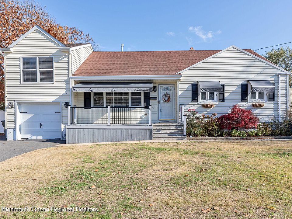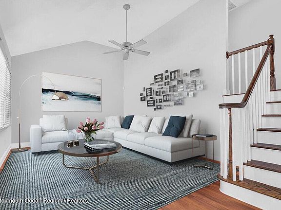 This well maintained three bedroom, two full bath home boasts a beautiful open floor plan! Living room with vaulted ceilings and tons of natural sunlight, flows directly into updated 'galley' style kitchen, granite countertops + side door access for easily accessible grilling. Large master with walk in closet plus two additional bedrooms on upper level. Lower level offers brand new vinyl plank flooring, wood burning stove and updated bath. Fenced in backyard with large storage shed. Situated on a quiet street in sought after Peachtree Estates located in Ocean Township. Close to houses of Worship, NYC transportation, Long Branch, Deal + Asbury Park.