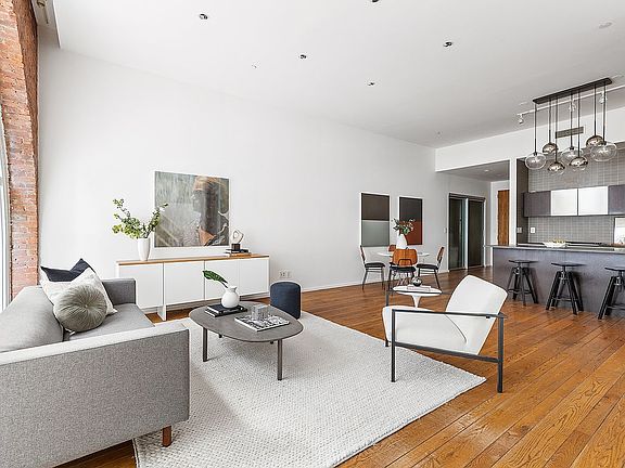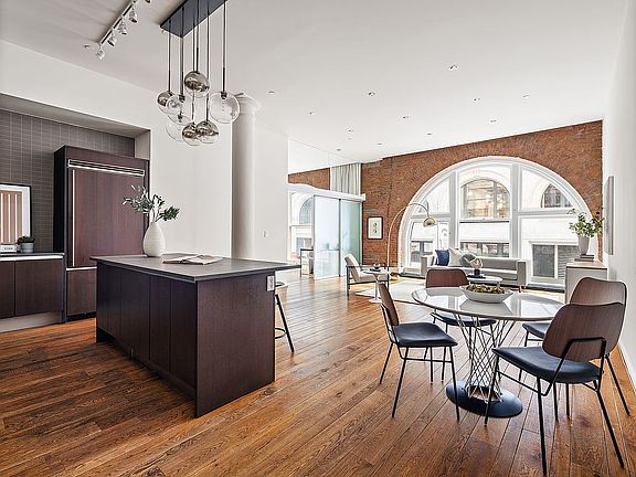 North-facing 1,300 square foot one-bedroom loft with two full bathrooms in the highly desirable 21 Astor Place, a boutique condominium building in prime Greenwich Village with low monthly fees. Upon entering, you are immediately welcomed with an expansive arched brick wall of windows, Brazilian hardwood floors and 11-foot ceilings. The chef’s kitchen features Poggenpohl cabinetry, Miele and Viking appliances as well as a large island for counter dining. The spacious master suite has a custom designed walk-in closet and can accommodate a king-sized bed, a home office or a lounge area. The en-suite master bathroom is outfitted with glass mosaic tiles throughout, high-end chrome fixtures, a walk-in shower and a separate soaking tub.