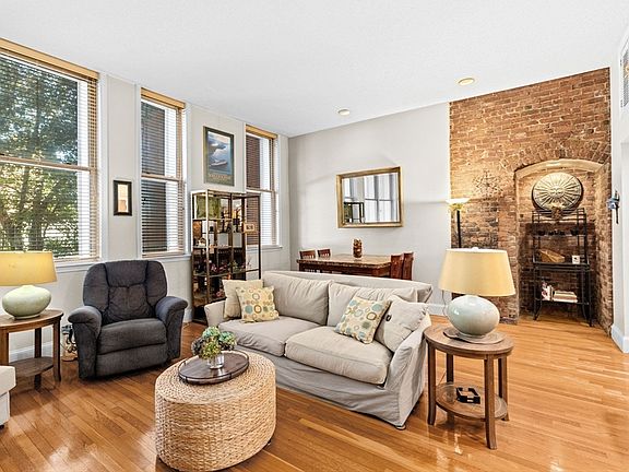 Architecturally stunning condominium in a sought after converted brick school house. Beacon Hill style with modern conveniences and one floor living. Open concept floor plan with exposed brick and dramatic 12 foot ceilings in the main living and dining area. Oversized windows flood the home with natural light. Gleaming hardwood floors throughout and light, bright kitchen with breakfast bar. Bedroom boasts soaring ceilings, a double closet, brand new carpet and room for a king sized bed. Enjoy convenient in-unit laundry, linen closet, and central air. All the big systems are new with heating and central air done in 2023, and new water heater in 2024. Meticulously maintained grounds with large common patio for outdoor gatherings and cookouts. Minutes from Hingham Shipyard, commuter boat, train, parks, restaurants, and beach. Low condo fees, pet friendly and deeded parking. This unit is the one you have been waiting for!