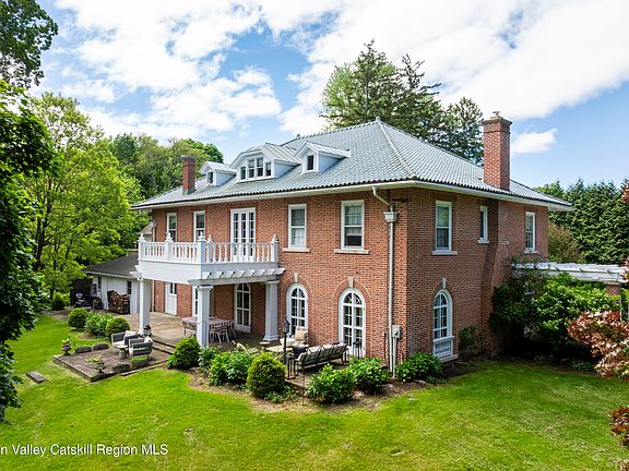 Tucked away on two secluded acres just minutes from the vibrant Saugerties village, Barclay Manor is a rare blend of elegance, scale, and total privacy. From the moment you turn into the long drive, you're met with old-world charm: soaring trees, antique bluestone paths, and lush gardens that frame the home like a storybook.