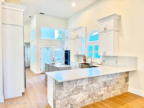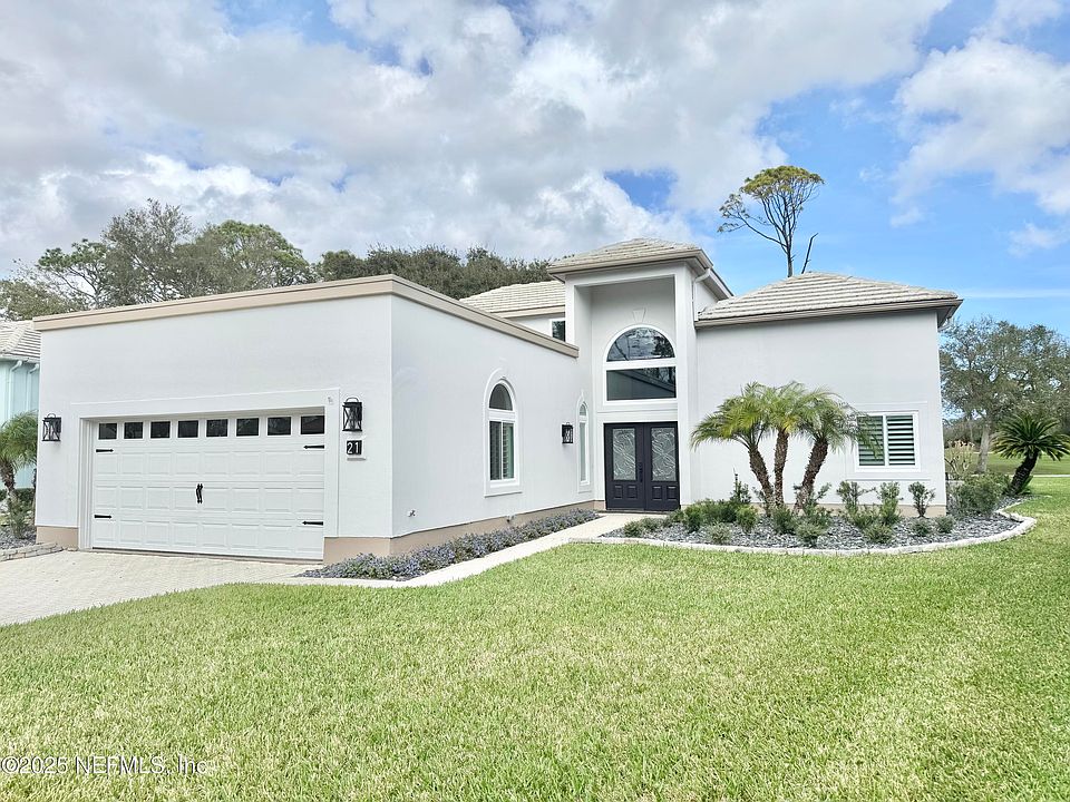 Come check out this fully renovated one level Plantation Bay home located on the golf course overlooking the #17 green with views of a pond, golf course and the brand new clubhouse! This home is move in ready thanks to a 200k renovation in 2024 with all new items including porcelain tile flooring throughout, new windows with lifetime warranty, plumbing, electrical and lighting, grand kitchen with solid wood cabinets with quartz countertop and backsplash, black and stainless steel appliances, solid wood cabinets for all the bathrooms with quartz countertops, floor to ceiling tiled showers with custom glass, sherwin williams paint inside and outside, solid wood baseboards, doors, fireplace, back patio tile and screens, hot water heater, total house water filter, landscaping with slate rocks, stone edging, bushes, palm trees, irrigation sprinklers and more. Located in flagler county with lower taxes. Roof is OK with current insurance. Shingles approved if you want to put new. Membership to golf club/amenities is not required to live in plantation bay. Plantation Bay has 45 holes of championship golf, brand new luxury clubhouse, tennis courts, pickle ball, fitness center, two pools, cabana and more.