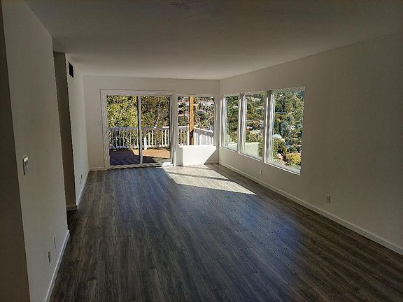 Views of Sun Valley area of San Rafael. New front door, new hardwood flooring throughout unit, new kitchen, new sliding door opens to rear deck that has views across valley. Interior remodel includes new doors to all rooms, new closet doors, new paint. The entire unit has new windows. Off street parking in carport for one car. Carport is shared with neighbor. Street parking always available. Front deck is great space for BBQs, outdoor seating etc. Rear deck is shaded with views. 4th Street dining and entertainment is two minutes by car. Downtown San Anselmo for additional dining options, 5 minutes by car. Great neighborhood with many long term residents. Unit is located in a duplex with shared laundry. Call or email with questions. Looking for tenants with good credit and references. Security Deposit of 5K to be paid in full at time lease is signed. No smoking on property per county ordinance. Lease term is 1 year, and can convert to month to month after one year. Rent is due on first of month, 3 day grace period, then late fee applies. Application fee $40/ per applicant.