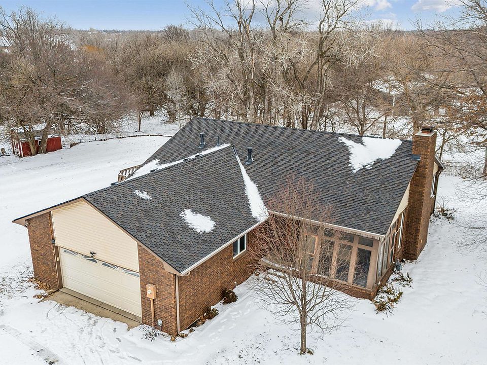 Located in a highly sought-after and established neighborhood near Lake Waltanna in Goddard, Kansas, this well-built 4-bedroom, 3-bathroom ranch home offers tranquility and space, sitting on nearly 2 acres with mature trees and picturesque surroundings. Step inside to discover a thoughtfully designed layout featuring a gourmet kitchen with custom cabinetry, granite countertops, an eating bar, and a pantry. The kitchen flows seamlessly into the living room with attached sunroom, making it perfect for relaxing or entertaining. Two gorgeous stone wood-burning fireplaces with gas starters, one in the living room and another in the family room, add warmth and charm to this inviting home. The main floor boasts a spacious primary suite with an ensuite bathroom, including double sinks, a whirlpool bathtub, a separate shower, and a walk-in closet. A guest bathroom, an additional bedroom, and a large laundry room with abundant storage and a utility sink complete the main level. The fully finished walk-out basement expands your living space with a large family room, two additional bedrooms, a full bathroom, and generous storage. The included pool table adds to the basement's entertainment appeal and the stone fireplace make it oh so cozy! Outside, you'll fall in love with the multi-level deck, patio, and serene setting surrounded by nature. Enjoy visits from deer and wild turkeys while appreciating the peace of country living just minutes from shopping and highways. Additional highlights include a brand-new roof, fresh paint, and newer carpet in the basement. Beautiful wood floors run throughout the main level home, adding timeless elegance. This home is priced to sell and presents an incredible opportunity in a fantastic neighborhood. Schedule your showing today to see this rare home!