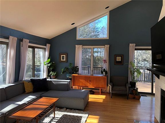 Welcome Home! This Contemporary home with soaring ceilings offers a floorplan with many possibilities. Perfectly placed windows allow for a bright sunny living space. A bedroom on the first floor always comes in handy. Loft space upstairs can be used as a home office, reading/homework nook or even a guest space. This home features 3 finished rooms in basement, walk out slider door to a patio and level fenced yard, plus plenty of gardening space. Newer Ikea kitchen and master closet built in. Spectacular 1,200 sf wrap around composite deck. Newer driveway and siding. Nice hardwoods, fireplace, A/C, 2 car garage and so much more.