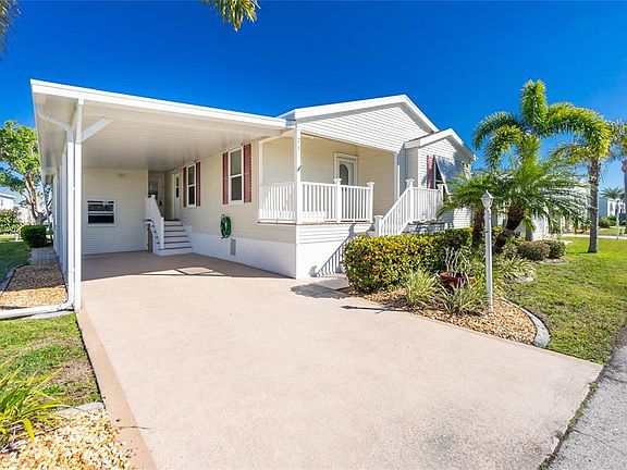 Welcome to wonderful Windmill Village. This vibrant 55+ waterfront community boasts multiple amenities including a mrina, pool, boat and trailer storage, shuffleboard courts, boat ramp and more. Boating access to Charlotte Harbor is less than 15 minutes via Alligator Creek. Community streets are private and golf cart friendly. This well cared for Palm Harbor home offers two bedrooms, two full baths and a large front deck for relaxing in the warm Florida weather. There is a large Florida room in the rear of the home for relaxing in any weather conditions. There is a 7' x 8'storage room at gound level. Boat slips in the marina are available on a first come first served basis. Windmill Village is located close to downtown Punta Gorda where you can find shopping, fine restaurants, weekly farmers's markets and much more. The low monthly fee of $256 covers lawn care, water, sewer, management and recreation facilities. List price does not include the community share buy in and bond of $18,285 which is returned to you when you sell. Note that the air conditioning system was replaced this year and the roof was replaced in 2022. Call today for a private tour.