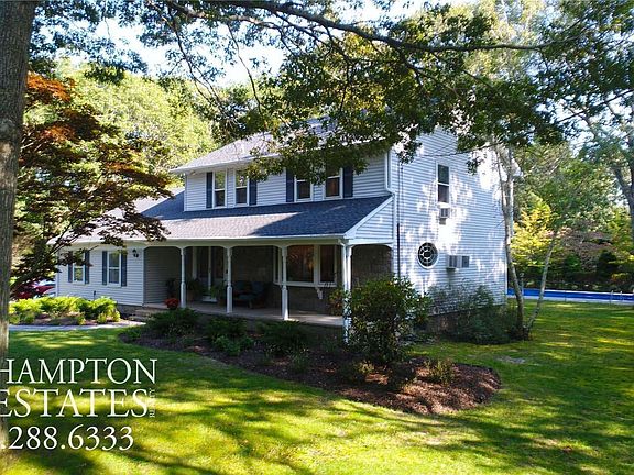 Whether you're seeking a year-round residence or a seasonal escape, this beautiful Hampton Bays Colonial near Tiana Shores offers the perfect blend of privacy, comfort and charm. As you approach the home, you're welcomed by a large inviting country porch that sets the tone for the warmth and character found throughout the residence. The beautiful entryway opens to a grand living room, where natural light pours in through a large front bay window, offering picturesque views of the surrounding landscape. First floor also features a formal dining room - perfect for entertaining, large kitchen, den, laundry room, full bath & 2 car garage. The upstairs has a generously-sized primary suite w/full bath and 3 additional large bedrooms that share a full bath. Large sliding glass doors from the kitchen lead you out to an expansive deck, offering seamless indoor-outdoor living - close to a beautifully paved pathway that leads to a private / fenced in-ground swimming pool w/new liner, cover and filter. The pool is surrounded by beautiful pavers, blooming greenery, and mature trees, situated on a park-like 1+ acre lot. This property provides both privacy and convenience to town and beautiful Hamptons Beaches.Call Listing agent Jen Talley directly!