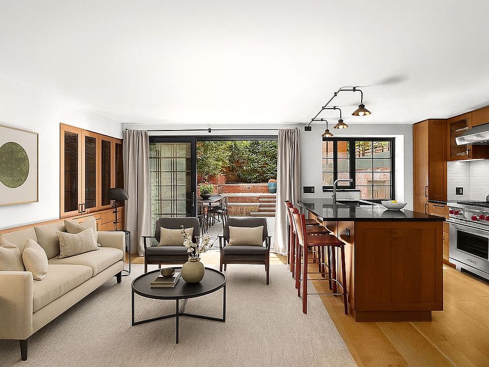 Tranquil Garden Escape in the Heart of the West Village. This garden floor jewel box home has been completely transformed with no detail overlooked. Custom walnut cabinetry lines the living/dining area which sits adjacent to the stunning chef's kitchen outfitted with a vented Wolf range, subzero refrigerator, Bosch microwave and dishwasher, fantastic counter and storage space. The large primary bedroom has wonderful built-in storage, triple-paned windows and a beautiful fireplace. The renovated, oversized bathroom is draped in gorgeous white marble and features a double vanity and large walk-in shower. The star of the show is the three-tiered, 765 sf private garden patio which features mature plantings, full irrigation system, built-in Wolf gas bbq grill and space for multiple seating and dining areas. Additional features of this unique home include a vented washer/dryer, an in-unit custom air filtration system, maple floors in impeccable condition and two-zone central HVAC. All of this in a boutique, pet-friendly coop on one of the most charming and historic blocks in the West Village. Note: There is a monthly assessment of $573.30.