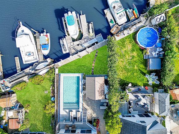 WELCOME TO YOUR DREAM WATERFRONT RETREAT! WHETHER YOUR SIPPING YOUR MORNING COFFEE WITH THE SUNRISE OR HOSTING SUNSET GATHERINGS, THIS HOME IS A SLICE OF PARADISE !! UNIQUELY ARTISTIC AND METICULOUS. MUST SEE, LARGER THAN IT LOOKS!!!! THIS 3 LEVEL HOME FEATURES BRAND NEW BATHS , BEAUTIFUL WOOD CABINETS, GRANITE COUNTERS, HI-END APPLIANCES, NEW WINE FRIG., ANDERSEN WINDOWS, & PARQUET FLOORS. PRIMARY BEDROOM ON 1ST FLOOR W/BUILT-INS. ROOF AND SKYLITES ARE ONE YEAE OLD. 4 SPLIT UNITS, 200 AMP SERVICE AND A ELECTRIC CAR OUTLET. 40 FOOT OF BULKHEAD, (APPROX. 10 YEARS), BOAT LIFT,NEW FENCE. TREK DECK LEADS TO ABOVE GROUND SALT WATER POOL WITH BRAND NEW STEPS, AND A LARGE PATIO. FRONT AND BACK IGS. WALK OUT BASEMENT WITH DEN, LOTS OF POSSIBILITIES.. great space, Call me fo Extra special details,,,