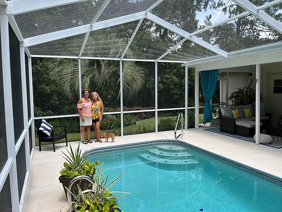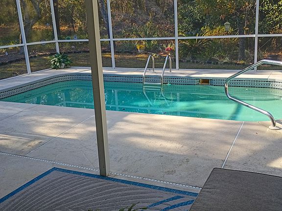 Beautiful Pool home with huge lanai and setting area .property is very private and secluded from neighbors .Also features a wonderful sitting area outside pool with gas fire pit Completely furnished turn key ready for either 3 to 6 month rental for snow birds ,with option to purchase .