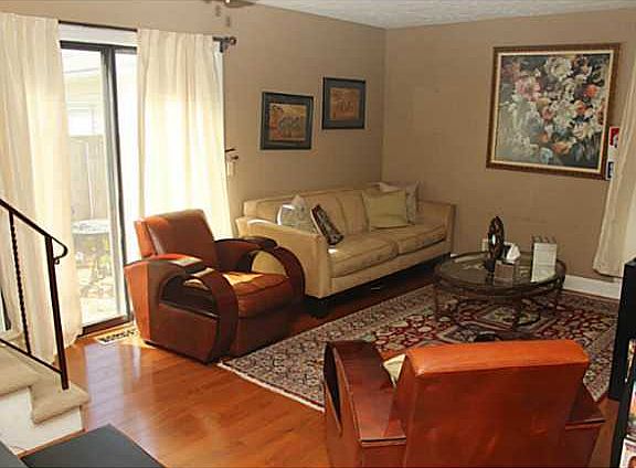 Stunning end unit townhouse with pristine interior. Very well maintained unit with nice neutral color selection. Updates include kitchen, flooring & newer HVAC. Kitchen with open breakfast bar area to dining room. Spacious living room has sliders to brick patio with privacy fencing. Nice size bedrooms. Finished room in the basement adds great extra sq ft (not incl in total sq ft). Move in ready!