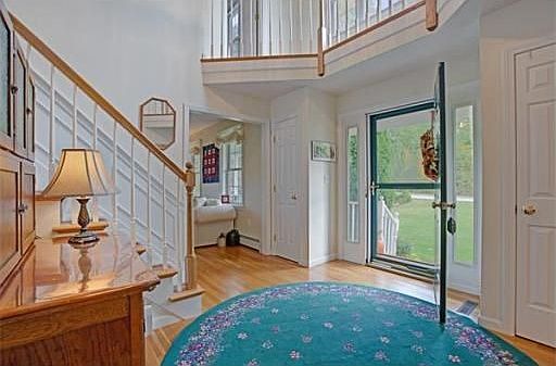 Incredible property! Impeccable young colonial w/welcoming farmers porch is sited on a 1.4ac beautiful, professionally landscaped corner lot in highly desirable Blueberry Estates & offers 2 spacious living areas. The open floor plan offers an inviting kitchen w/ hdwds, granite, maple island & backsplash opening to an oversized deck. The 2005 high-end, main level in-law apt (or possibly at home business; au-pair suite) w/maple kitchen, cath. FR, bedrm, full bath, W/D, separate entrance & bsmt.