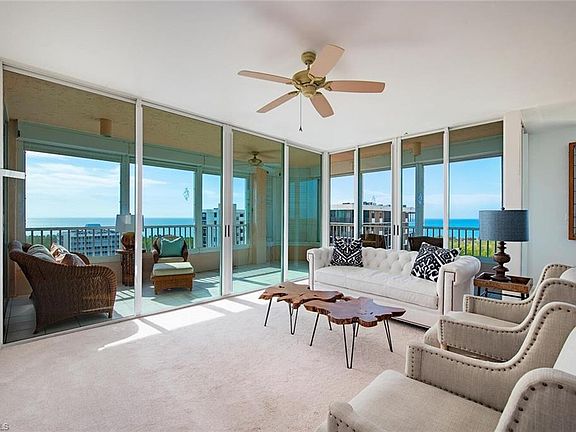 Coveted top floor corner property with fabulous wrap around views of the Gulf of Mexico, Delnor State Beach Park, Bay and Vanderbilt Channel. The property features lots of natural light. Split bedrooms offer privacy for owners & guests. Enclosed lanai off of the guest room & kitchen is perfect for office or cozy sitting area. The property has been lovingly maintained by the original owners. The amenity rich gated community offers community pool overlooking Vanderbilt Channel with grills and restrooms. boating ,tennis, pickleball, bocce,, kayak storage. Owner storage unit.in building. The under building enclosed garage B-20 has exclusive use to current owners which will be assigned at closing.(some garages have sold separately for $150,000.) A short walk or bike ride to Wiggins State Park and Vanderbilt Beach. Boat docks can be leased when available. A truly unique community! Great opportunity for investors and end user with liberal rental policy.