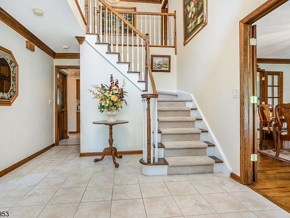 Situated on a premium view lot in Rolling Hills subdivision. This beautiful home features 2-story ceramic foyer entry flanked by living and dining rooms with French doors. Spacious eat-in kitchen with cherry cabinetry and ceramic tiled floor opens to family room and sun room. Family room features brick fireplace bordered by circle top windows and slider leading to deck connected to sun room. Sun room has a wall of windows with sweeping views of the scenic back yard. Powder room, laundry room and direct entry to 3-car garage complete the main level. The 2nd floor features a master suite with 2 walk-in closets, sitting room with fireplace and full bath with jetted tub, separate shower, dual vanity and skylight. Three spacious additional bedrooms and main bath complete the 2nd floor. Finished basement provides additional living space with exercise room, game room and recreation room with wet bar. Powder room, workshop and utility/storage room complete the lower level. Rolling Hills provides easy access to Routes 31 & I-78 and downtown Flemington. You will love coming home enjoying the sweeping views all year round.