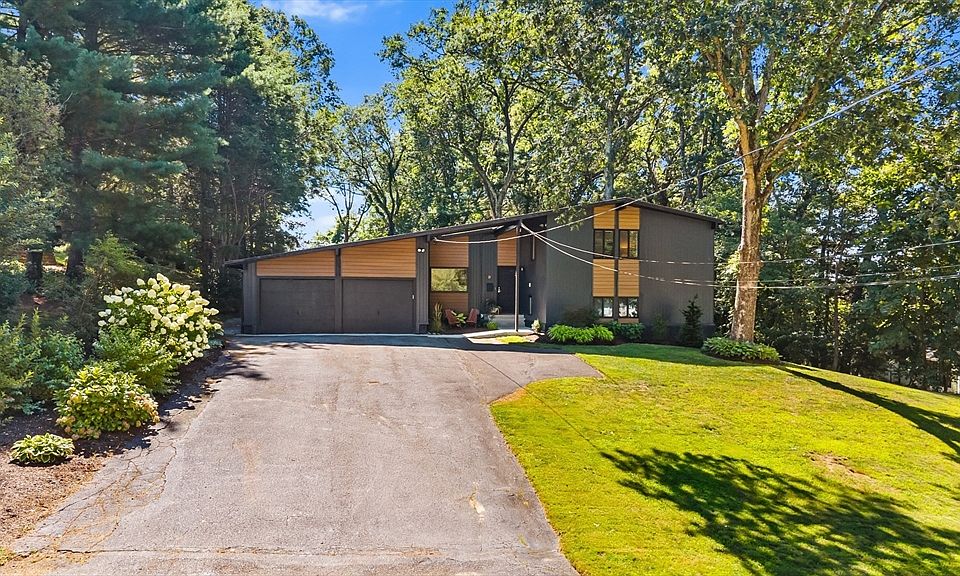 Discover this fabulous, mint condition 3,500+ sq. ft. Mid-Century Modern home—a rare gem where timeless architecture meets modern living. The massive open floor plan, soaring vaulted ceilings, and walls of glass create a dramatic yet welcoming backdrop, filling the home w/ natural light. Perfect for entertaining, the expansive living & dining spaces flow seamlessly to a lovely 1 year old composite deck & fenced yard, offering indoor-outdoor living at its best. Every corner is designed to inspire—whether you’re hosting a lively gathering or enjoying a quiet retreat in your private spaces. Set in a wonderful neighborhood, this unique property features a well-equipped quartz kitchen w/ SS Bosch app.,1st floor laundry, 2-car garage, & plenty of room for everyone w/ 4 bedrooms, 2 full baths, & 2 half baths. This is more than a home—it’s a lifestyle & a rare opportunity for the buyer who craves something truly special. AC, 3 zones, LVF throughout, gas heat, 2 fireplaces, tons of granite.