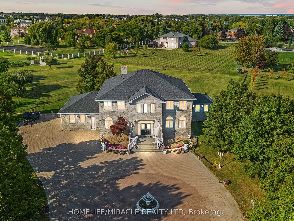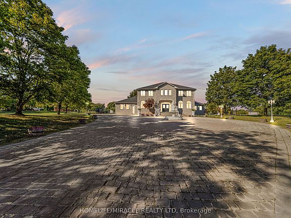 This grand residence sits on a remarkable 548.87 ft frontage corner lot with the possibility of future severance, offering unmatched potential and prestige. Designed with refined elegance, this mansion boasts approximately 7,000 sq.ft of luxurious living space tailored for both comfort and entertaining. Step inside to soaring 10' ceilings on the main level and 9' ceilings in the professionally finished basement. The main floor features a grand office, formal living and dining rooms, and an open concept gourmet kitchen with granite countertops, custom cabinetry, and an adjoining family room centered around a natural Indiana stone fireplace. Every detail has been thoughtfully curated with hardwood flooring, crown moulding, upgraded interior and exterior lighting, pot lights, and decorative sconces throughout. The master suite offers a spa-inspired ensuite retreat, while the additional principal rooms are beautifully appointed and generously proportioned. The fully finished lower level provides multiple configuration options, ideal for entertaining, recreation, or extended family living. Meticulously updated and tastefully decorated, this estate blends modern upgrades with timeless character. From its grand presence on one of Brampton's most coveted corners to its incredible craftsmanship and attention to detail, this home is an opportunity to own a property that embodies elegance, charm, and long-term value.