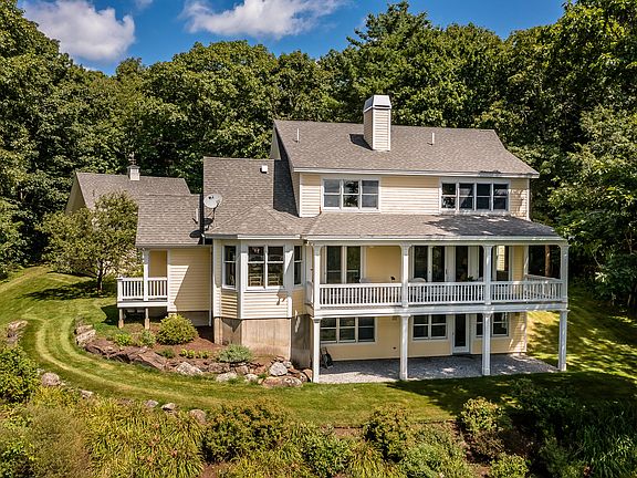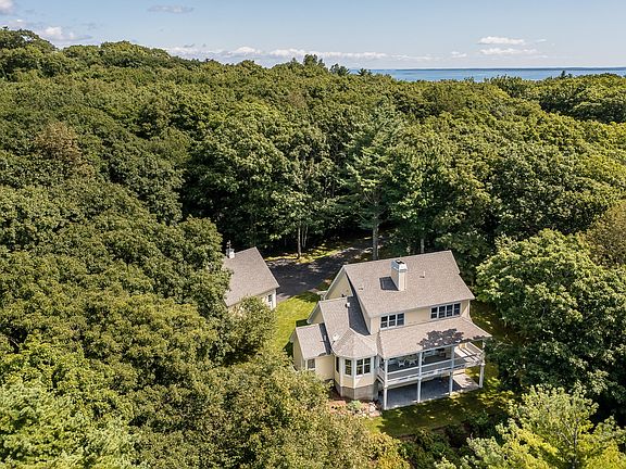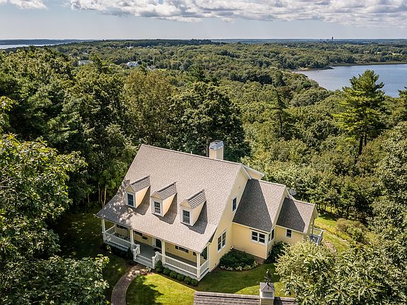 21 Bristol Drive is an exceptional residence located in the heart of coveted Bay Ridge, Rockport, with lovely views overlooking Chickawaukie Pond. Originally built in 2002, this generously sized cape-style home has been meticulously maintained and offers inviting spaces throughout. The residence seamlessly blends comfort and elegance. The home has three bedrooms on the second level, which includes a primary with a large en suite bath. The fourth bedroom is on the first level, with a full bath. There is a half bath included in the laundry room off the kitchen. The lower level living is a fully finished walk-out basement with an expansive exercise room. It offers year-round comfort with multi-zone hot water baseboard heating and two beautiful wood fireplace hearths. First floor and basement in-ceiling stereo speakers, including the rear porch as well as a full house monitored security system. Basement has lower level plumbing rough-in for a future full bathroom and bedroom. Exquisite woodwork throughout and standout covered porches contribute to the home's appealing character. The gourmet kitchen was built to the highest standards with almost-new appliances and a wonderful French country fireplace. Sited on a generous, approximately 2.18 acre, lot, the property features beautifully landscaped grounds, including flowering shrubs, perennial garden beds, and a peaceful ambiance.