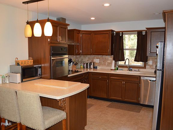 Welcome Home! Nestled in the Indian Rocks community, where tranquility and natural beauty join. Sitting on 0.79 acres this home has just undergone a pre-listing inspection to help give you peace of mind for many years without repairs and the seller is offering a home warranty to boot!. Being fully furnished will allow you to move right in. Near Lake Wallenpaupack, this property presents an opportunity to indulge in lake living and all its recreational activities. With nature just outside your door you can sip your morning coffee or host friends with a symphony of chirping birds and occasional visits from deer while on your back deck. The open concept design is ideal for entertaining. The living area flows into the kitchen and dining areas creating a perfect gathering space for socializing.