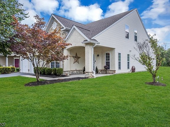 Welcome to this stunning Lincoln Manor model in Wellington Manor, a 55+ Community. This beautifully maintained stone & stucco home sits on a private, cul-de-sac lot and is loaded with upgrades. The gourmet eat-in kitchen features freshly painted 42" maple cabinets, granite countertops, stainless steel appliances, tile backsplash, and solar tube lighting. The two-story great room impresses with vaulted ceilings and a floor-to-ceiling stone fireplace, while the formal dining and living rooms add elegance with crown molding and a Palladian window. The first-floor primary suite offers a tray ceiling, sitting area, walk-in closet, and spa-like bath with soaking tub & separate shower. Upstairs includes a private guest bedroom with full bath, spacious loft (currently used as a bedroom), and large storage closet. All new flooring on first floor. New stair runners and wall-to-wall carpeting on second floor. Brand new roof in 2025. New 220 amp electric in garage for EV charging. Enjoy the paver patio with motorized awning and private backyard views. Recent updates include a newer HVAC, hot water heater, updated baths, custom blinds, and upgraded recessed lighting. Community amenities: clubhouse, pool, fitness center, tennis & bocce courts. Conveniently located near Princeton, Pennington, Bucks County, and major routes to NYC & Philly.