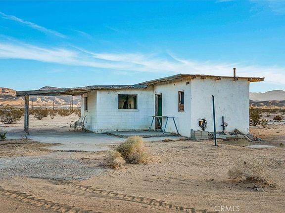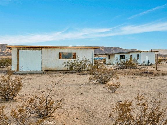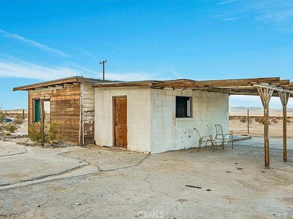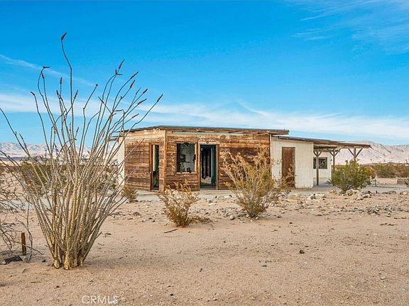 This nostalgic fifties homesteader, zoned single family residence, is ready for you to finish renovation. Set on 5 acres in the vibrant Wonder Valley neighborhood of 29 Palms. Enjoy stunning desert views of the adjacent Pinto Mountains, with a prime location only four minutes from Utah Trail/Park Boulevard to the East entrance of Joshua Tree National Park, and the revitalized downtown. Power is at the street. While the main house isn’t yet rehabbed, it has incredible potential with some TLC. The charming, airy 700-sq foot garage has a new roof, and has been upgraded to feature a bathroom with new flush toilet and sink, and a tank water system for hauled water. A bar/dining area has its own cold-water sink. A small solar array charges a 12-volt battery system for a water pump and lights, and features a USB port and 2 standard wall outlets for charging devices. Atmospheric lighting makes it a great place to stay while revitalizing the home, or having your own private desert cantina-vibed clubhouse. The garage’s large sunny windows and sizeable barn door could make it an ideal artist’s studio. The cabin was once owned by the original “Cactus Jack” Jack Cones, the Flying Constable of 29 Palms. The property is 2 blocks from The Glass Outhouse art gallery and 10 mins from the Palms Restaurant. A fantastic opportunity to create your dream desert retreat! Address is for marketing purposes only, heading east on 29 Palms Highway, turn left on Cactus Jack Ave, second house on right.